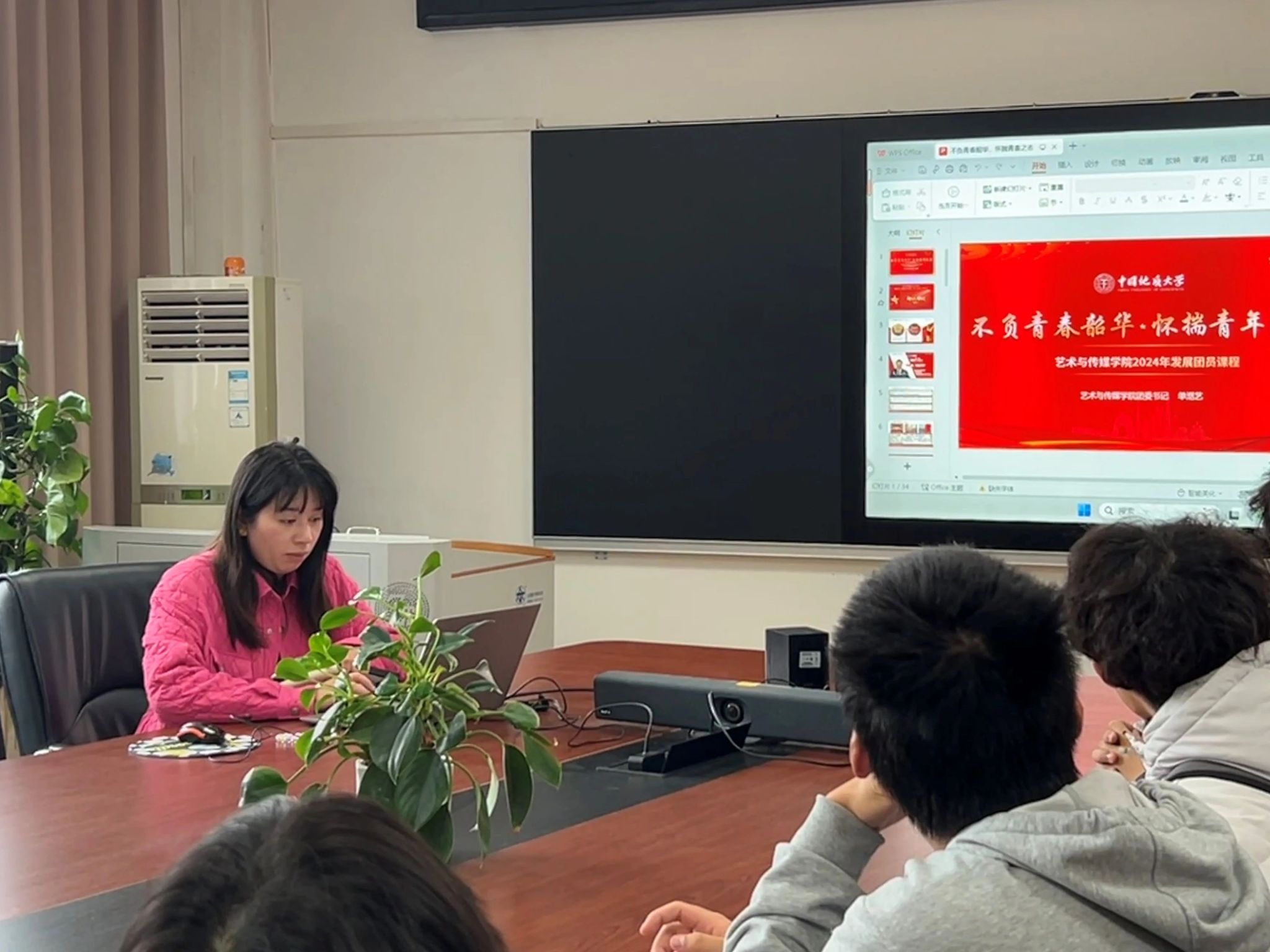 培训的第一项,由单湉艺老师为团学骨干培训。单老师以“不负青春韶华,怀揣青年之志”为主题,从青年的精神面貌、人才培养、政治素养三个方面对当代青年的精神面貌进行总结,并对青年提出殷切期望与勉励。随后,单老师从“雄关漫道真如铁”、“人生万事需自为”、“乘风破浪会有时”三个专题多个层面讲述了多个年代、多个领域青年人用青春之热诚为祖国奋斗的无上光荣。并对大家提出几点希望:一是要加强理论学习,读原著、学原文、悟原理,积极向党组织靠近,听党话、跟党走;二是要加强专业学习,积极参加学术活动、学术竞赛等,发挥模范带头作用,加强学风建设,营造严在地大,学在艺媒的学习氛围;三是践行“全心全意为同学们服务”的宗旨,广泛开展“我为同学做实事”的活动。