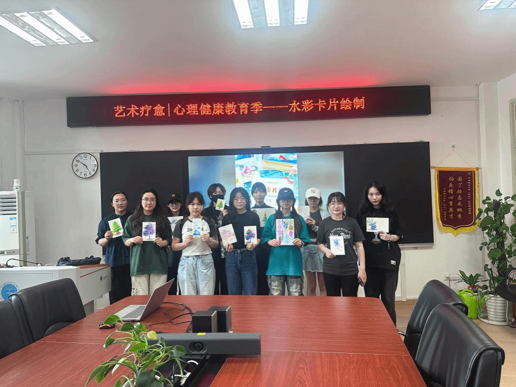 本次活动延续了 “艺术疗愈” 系列活动的核心理念,将绘画艺术与心理疏导巧妙融合。活动现场,工作人员为参与者精心准备了各类水彩画材及参考,同学们可根据自己的喜好挑选纸张与颜料,将内心的情绪与愿景倾注于笔尖。有的同学用明丽的暖色调描绘绽放的花朵,传递对生活的热爱;有的同学以校园风景为灵感,绘制出熟悉的教学楼、花园,将对校园的热爱融入画中,每一张贺卡都成为独一无二的 “心灵画像”。