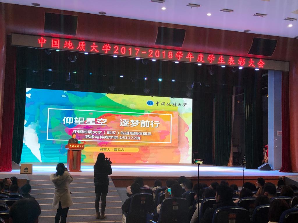 本科2017级161172班班长夏乙力同学作为年度先进班集体标兵获奖班级代表,以《仰望星空,逐梦前行》为题做大会主题发言,分享了污污漫