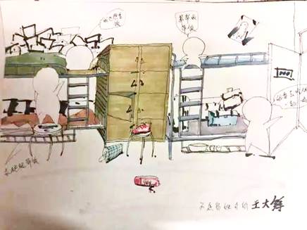 涂鸦活动共分为宿舍关系类、师生关系类、家庭关系类、心理情愫类、大学生活类五大主题,同学们发挥创意,脑洞大开,在白纸上随意画出自己的心情,创造出一幅幅极具创意色彩的画作。或许有些同学已经有深厚的绘画功底,有些同学第一次拿起画笔,大家通过抽签形式获得主题之后的创作极具个人风格色彩。在纸上配几行文字来展示他们的设计理念,最后也可以按下手印留作纪念。
