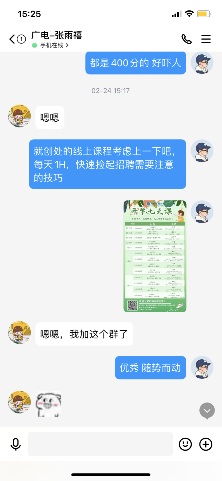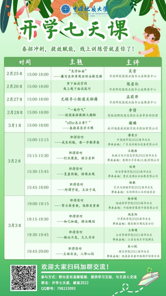 学生就业指导处举办的“开学七天课”,精准投放信息,号召学生迅速从考研的赛道转向,积极备战春招。目前已有多名学生找到心仪工作,签订三方就业协议。
