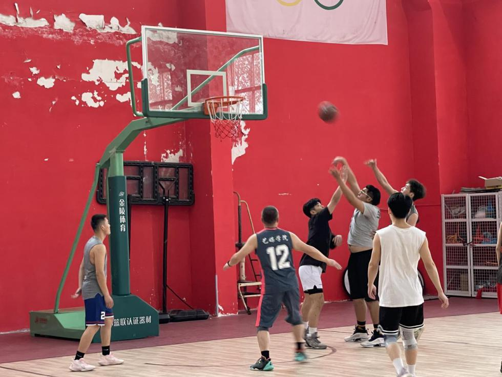 比赛的第二场于3月24日下午举行,由教师代表队对战本科生代表队,随着哨声响起,球员们奔跑追逐,两支队伍狭路相逢,滴滴汗水洒落在篮球场上,伴随着矫健的步伐,拼搏出青春力量。每次进球,都引来场边同学们的热烈喝彩。经过一个多小时的精彩对抗,最终教师代表队以64:57的比分胜出。
