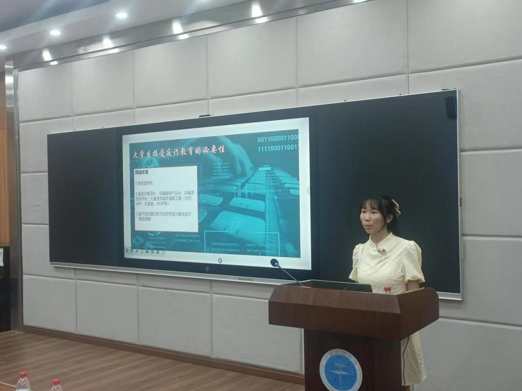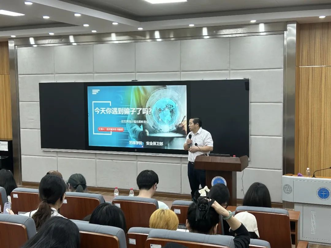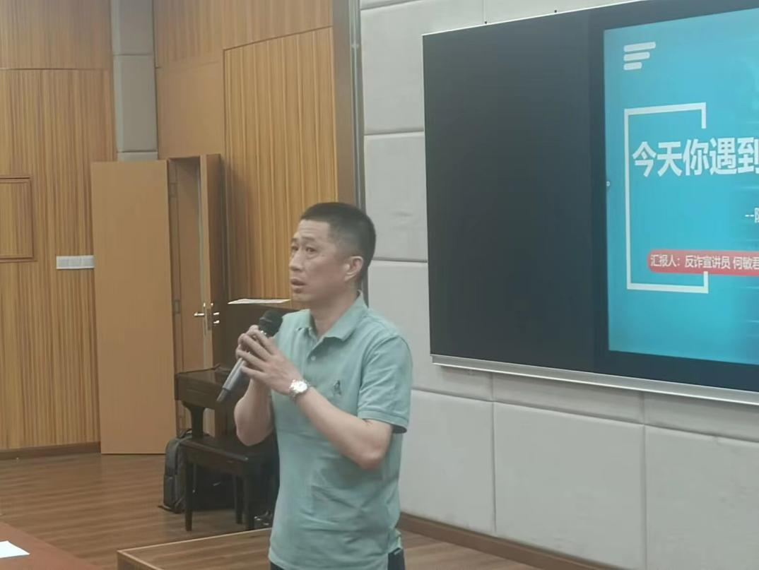 反诈宣讲员何敏君同学和安全保卫部魏景明、彭红进老师以及陈华文老师受邀讲解。
