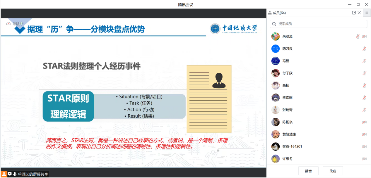 辅导员陈习良老师就简历制作及投递技巧内容做主要介绍,通过理论与实例相结合的方式,为同学们分析了为何需要好简历、针对不同岗位应如何准备简历、如何分模块盘点优势以及完善简历的方法,为同学们求职简历的制作提供优化建议。