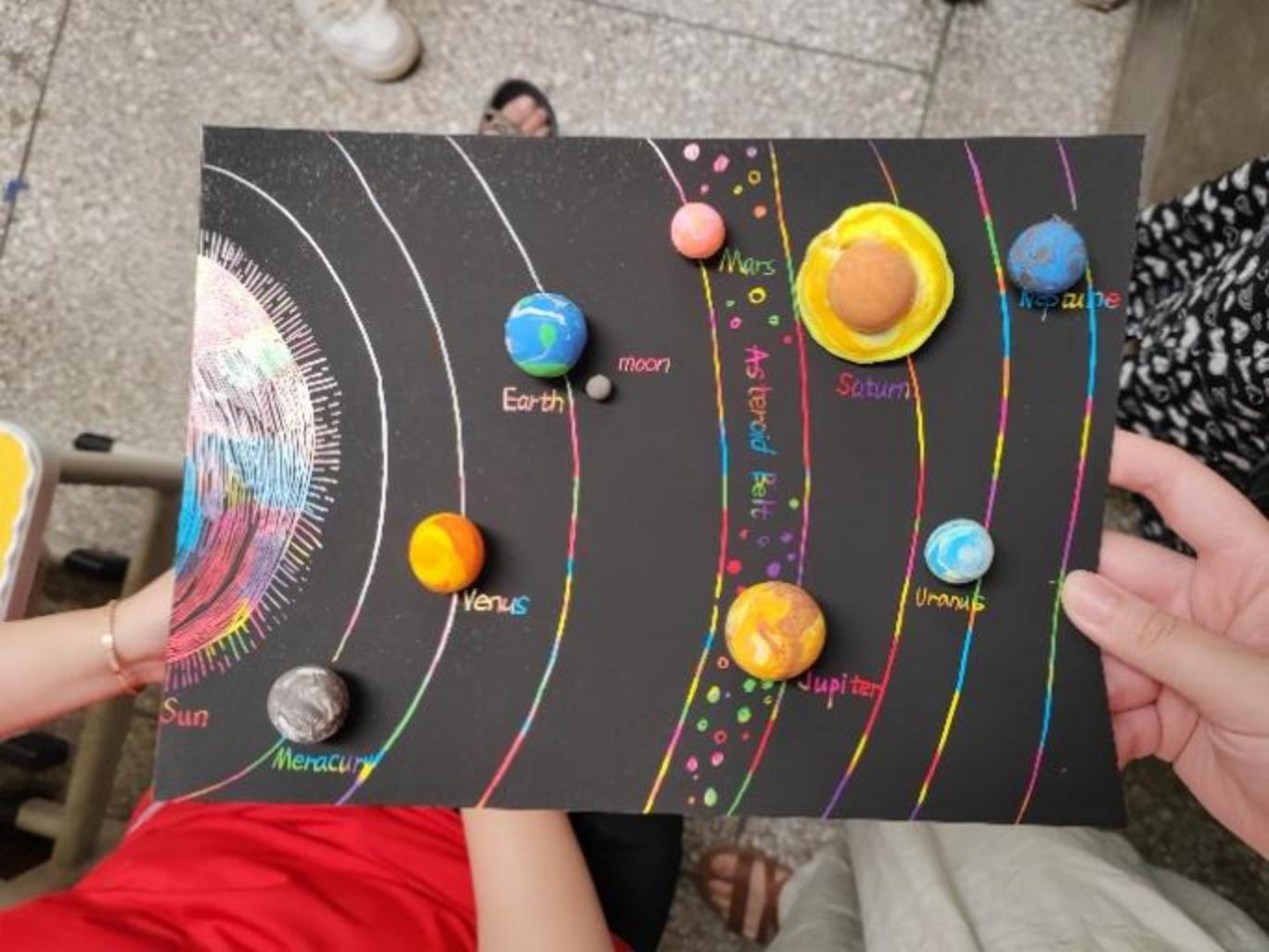 在教学中,志愿者老师将课程内容与地大地质特色相结合从而给学生带来更好的课程内容,老师们为学生们介绍了太阳系各行星的知识,并带领同学们以粘土的形式来制作太阳系七大行星的模型。九里阳光艺术支教团成员余骥飞表示“在前期课程准备中,大家一致认为可以将艺术支教课程与地大地质特色相结合来让小朋友们更好感悟地球与宇宙的奥秘,在我们通过交流后完善了这门艺术科普课程的内容”。