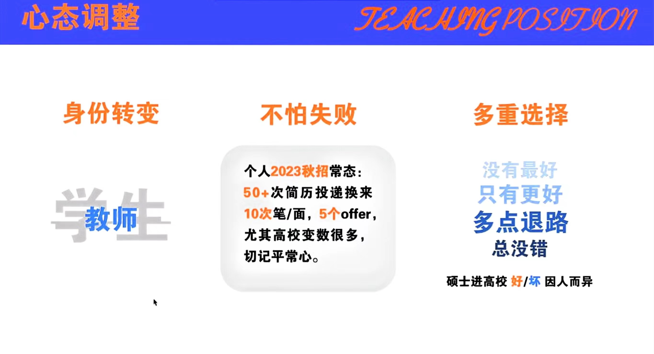 首先,肖淋译学姐从考前准备、考试内容、心态调整三个方面为同学们详细讲授了教师岗位的备考流程,并对教师面试试讲环节提出针对性意见,最后提醒大家调整面试心态,注重从学生到教师的身份转变。