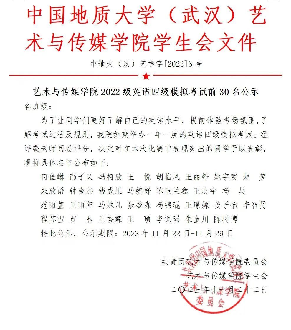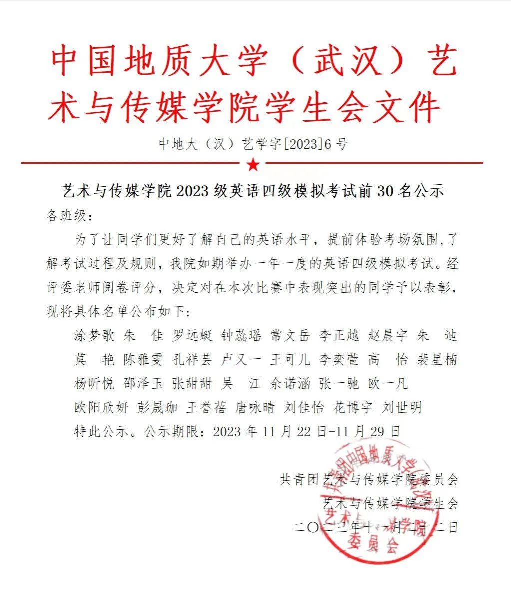 公示 | 污污漫 英语四级模拟考试前三十名公示