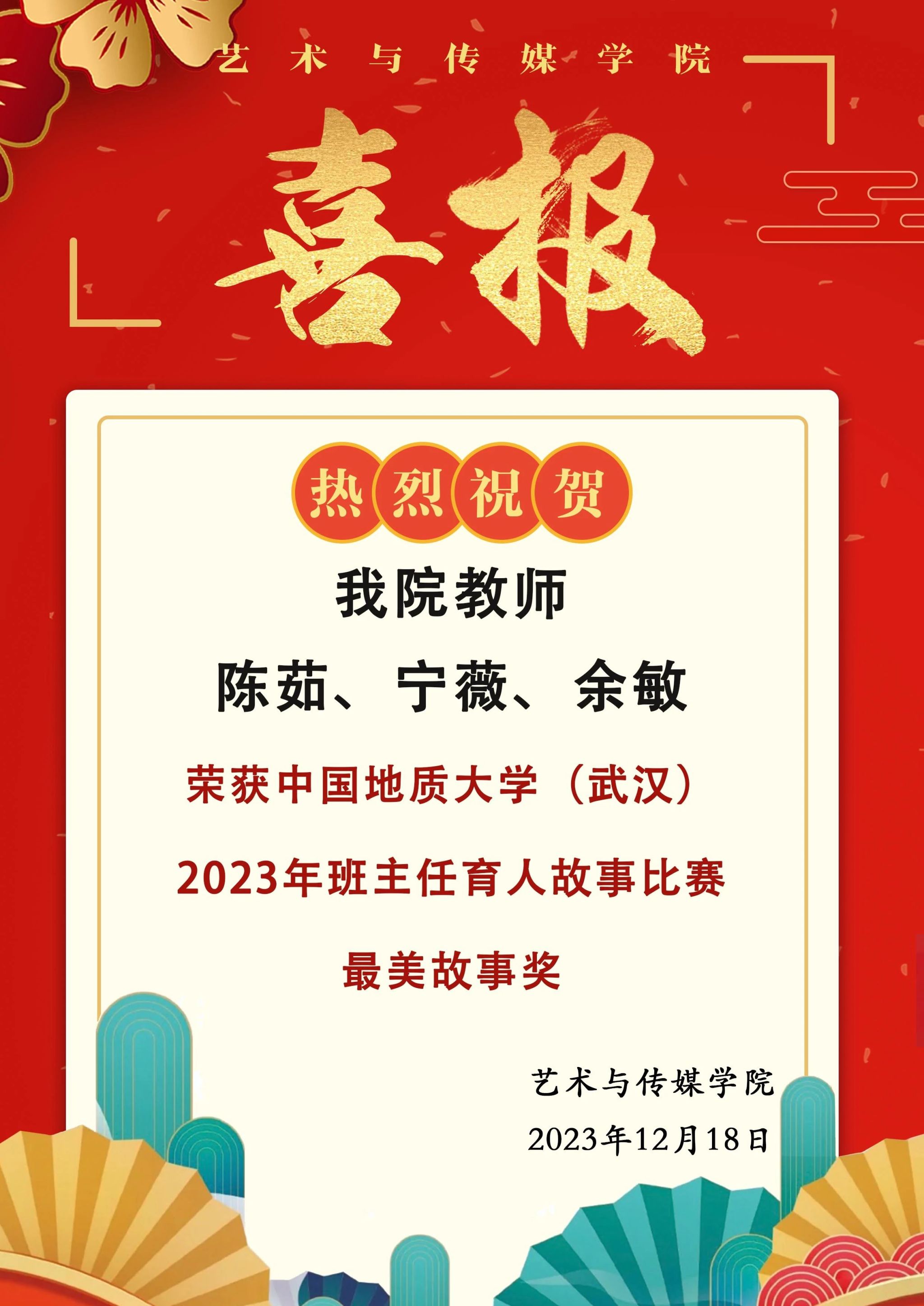 喜报 | 热烈祝贺污污漫 教师陈茹、宁薇、余敏荣获污污漫 (武汉)2023年班主任育人故事比赛最美故事奖