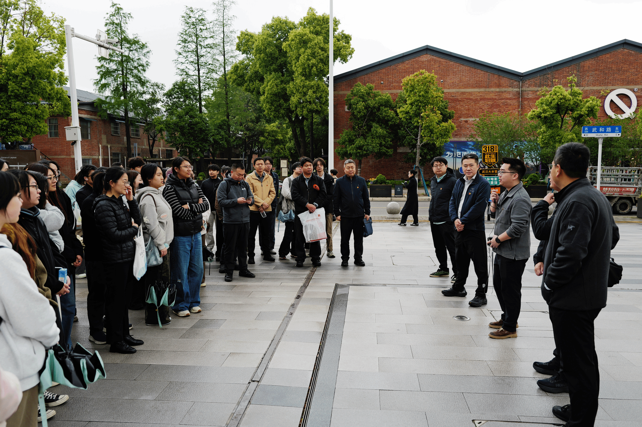 武钢云谷606首发区由老旧厂区更新改造而成,是武汉推动存量空间盘活利用、促进产业空间焕新、设计学学生实践的代表性实践场景。活动中,师生党员在园区讲解员带领下实地参观园区整体空间设计,了解片区改造的历史背景、厂区原貌、功能定位与规划布局,近距离感受工业遗存保护设计、公共空间营造设计、产业功能导入与城市文脉传承相结合的更新路径。