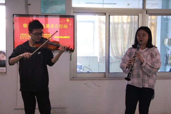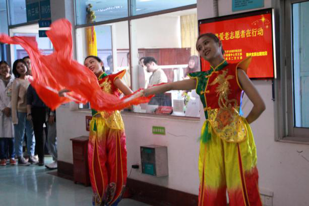 党委开展“不忘初心,牢记使命”主题教育志愿服务活动,学院党委组织四十余名党员师生前往东湖医院,对住院的老人们进行亲切问候,并为他们带来了精彩的演出,大家用实际行动践行共产党员的初心和使命。