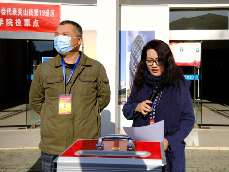 选举由学院党委书记郭秀蓉主持。上午9点,学院师生陆续到达学院楼前排好队伍并认真填写了选民证。统计人数后,学院党委书记郭秀蓉对相关选举事项进行了说明。全体师生听完讲解后仔细填写选票,依次走到投票箱前,郑重地投下自己的选票。