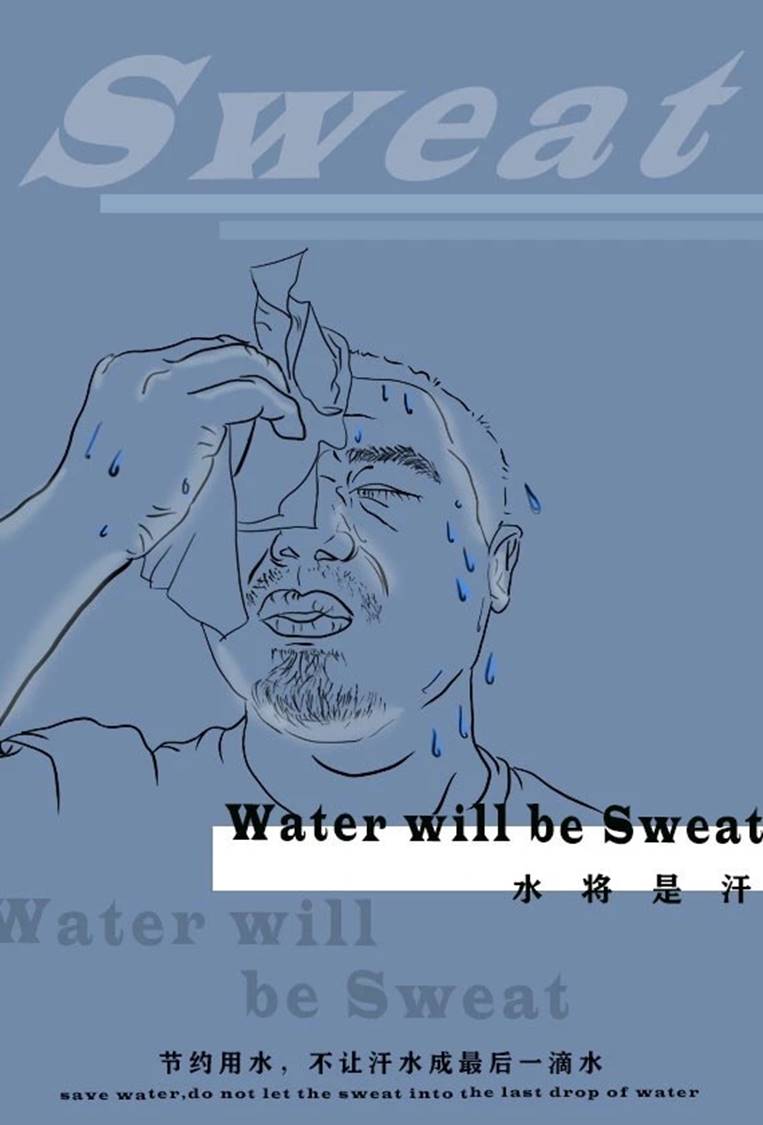 创意说明:水一直是人们离不开的资源,但是水的总量是有限的,人们的过度消耗,总有一天会导致水资源枯竭,所以节约用水成了当下人们应该重点关注的问题。本作品重在表达这种破坏总有一天会回报在人类自己身上,当人们失去了最后一滴“纯净”水,将会是什么代替水……