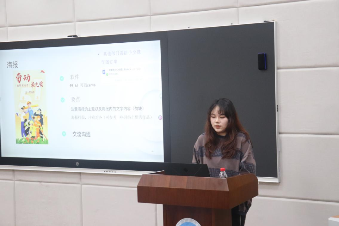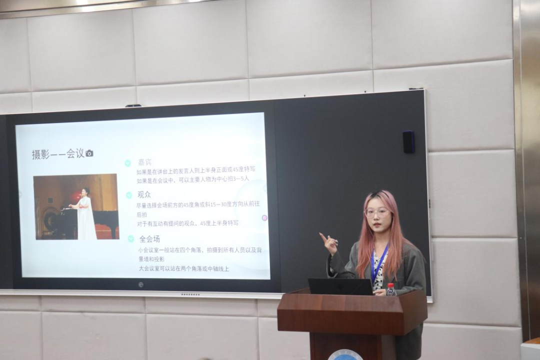 最后是全媒体中心的分享,副主任王蓉蓉详细地阐述了部门内部运营学院微信公众号的日常,如何与其他部门妥善对接工作,接着讲述了部门内的制度:“工作制度”“轮值制度”“审核制度”。副主任王越分享了活动摄影的有关经验做法,包括舞台摄影和运动拍摄,接着介绍了通讯稿的写稿方法和要点。主任傅彬莹介绍了海报、推文封面的制作软件、制作方法、制作要点,以及如何与其他部门开展交流沟通,推文排版工作的详细流程和关键点。最后总结了如何平衡学习和工作时间的方法。