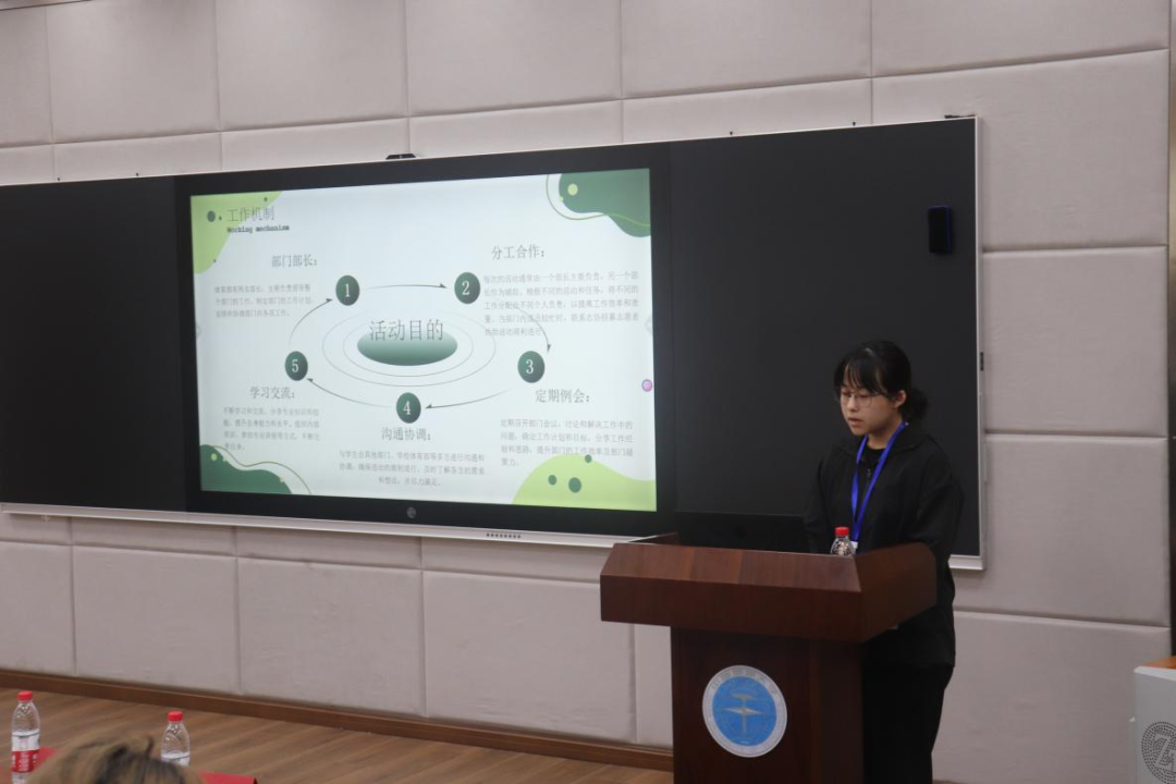 首先是体育部的分享,部长蒋欣玥介绍了体育部的部门架构,部门内部主要活动、例会等,以及如何明确主体确定方案、海报、宣传、进行总结等。