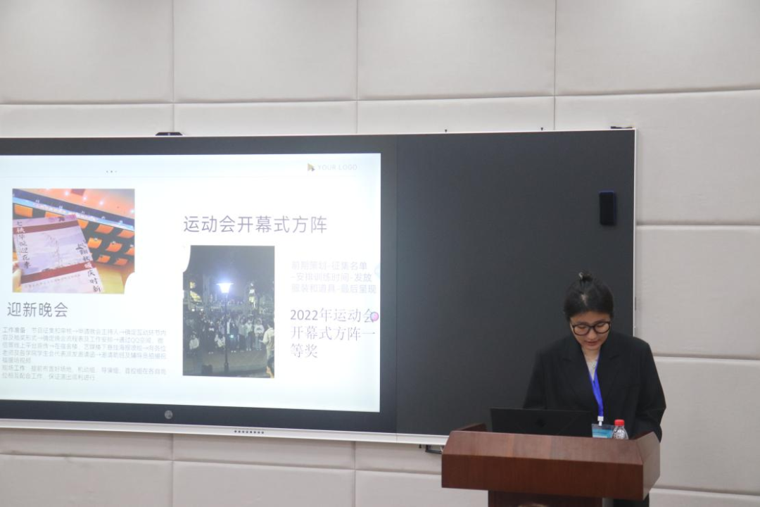 然后是文艺部的分享,分享人是副部长杨梦琪,她介绍了部门所举办的特色活动及流程,包括迎新晚会、运动会开幕式方阵等,接着介绍了部门的奖惩机制,分别从“准备工作”、“人员安排”、“后勤工作”三部分介绍协调工作的方法。